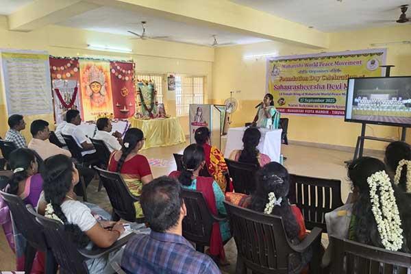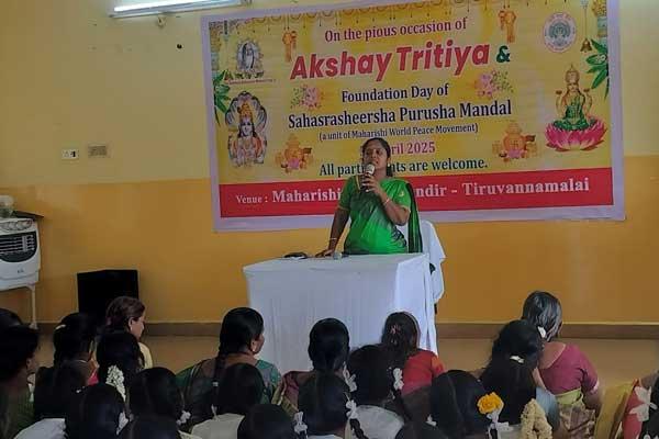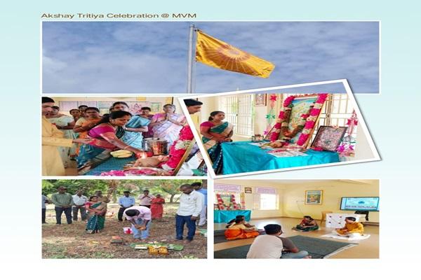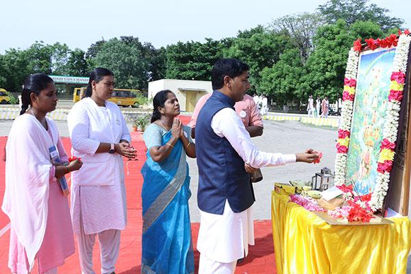 the divine blessings of Gurudev and His Holiness Maharshi ji as per the guidance received, Akshay tritiya was celebrated with full spirit and enthusiasm. Following Guru parampara Pujan and TM practice the victory of flag was hoisted. Along with that TM introductory lecture was conducted,compound wall construction was initiated. The teachers were motivated explaining about the vision of MWPM.