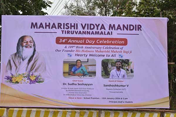 The auspicious festival of Krishna Janmashtami, marking the birth of Lord Krishna, was celebrated Under the spiritual banner of the Maharishi Spiritual Citizens Awakening Campaign with great devotion, cultural vibrancy, and student participation at Maharishi Vidya Mandir School, Tiruvannamalai on 14.08.25.